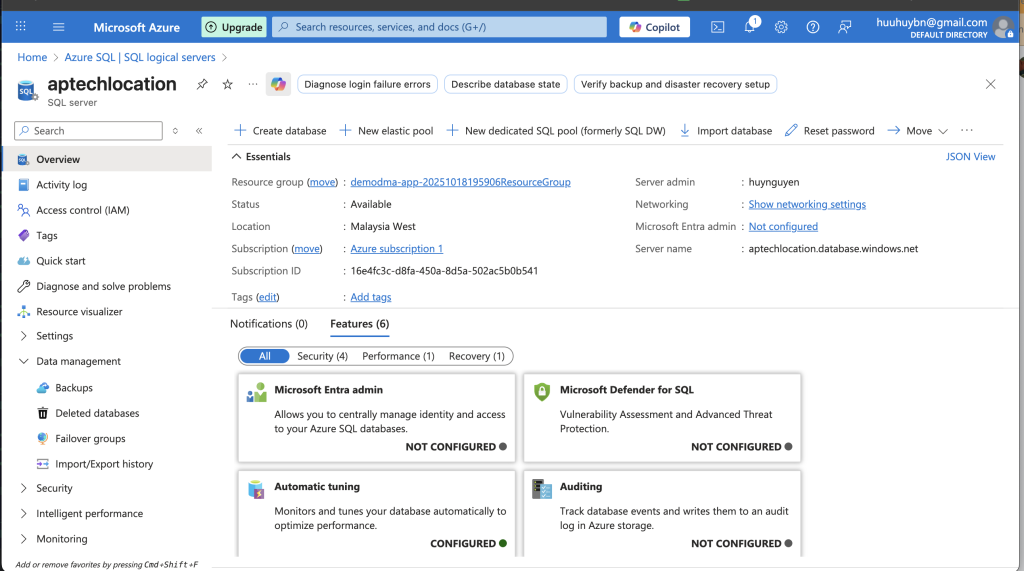 - Hoặc một dịch vụ cụ thể (như SQL Server, Web App, Storage...)